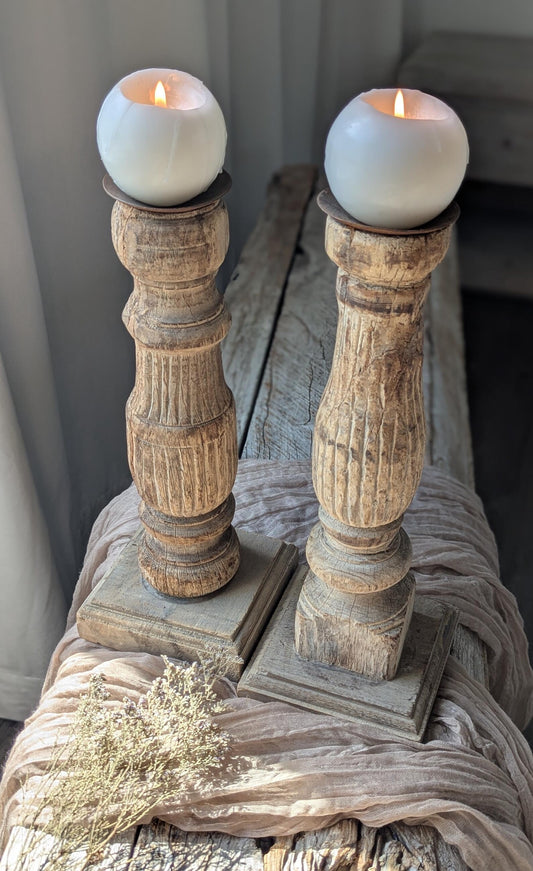 Elysian Light-Antique Wooden Candle Holders Set of 2 -Anticoarte