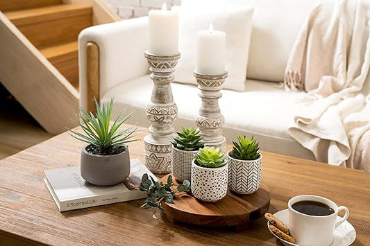 Handcrafted Antique White Wooden Candle Holder Set of 2 -Anticoarte