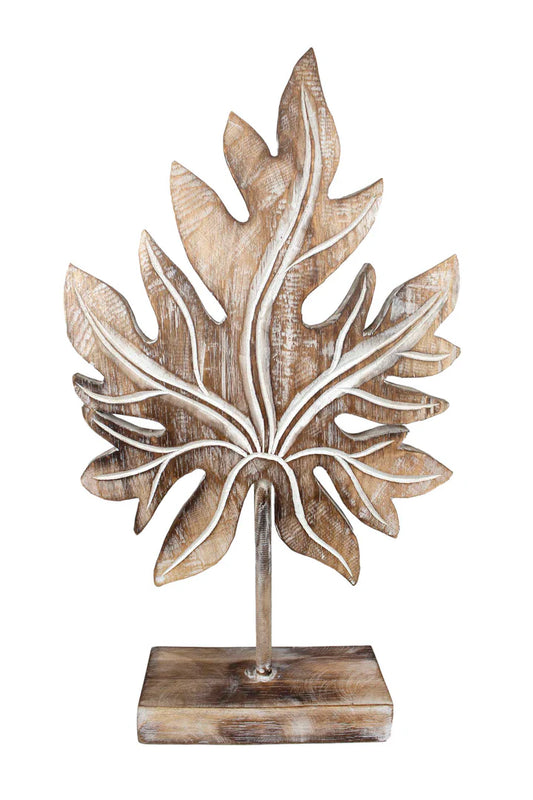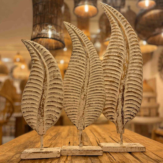 Carved Wooden Leaf Table Accent Set of 3 | Decorative Sculpture-Anticoarte