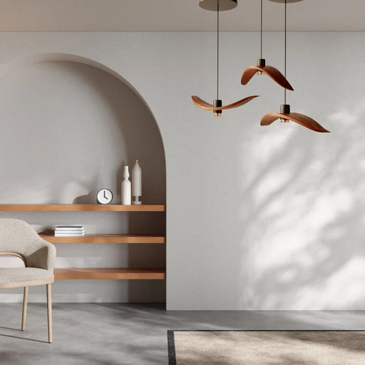 Wooden Wings Pendant Lamps Set Of 4 | Anticoarte