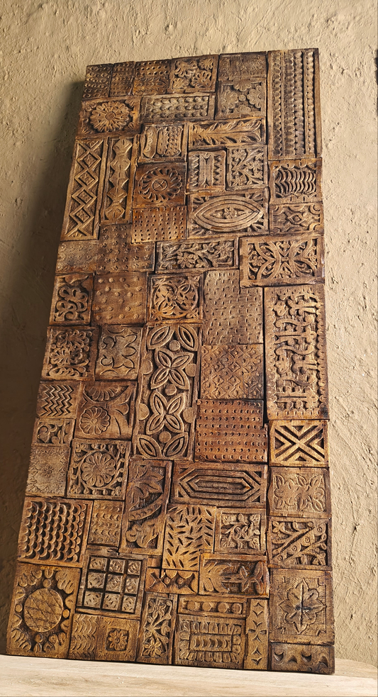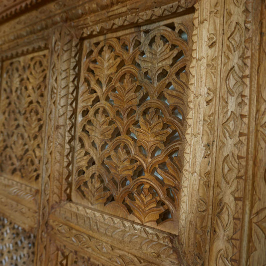 Heritage Hand-Carved Wooden Jali Wall Panel-Anticoarte